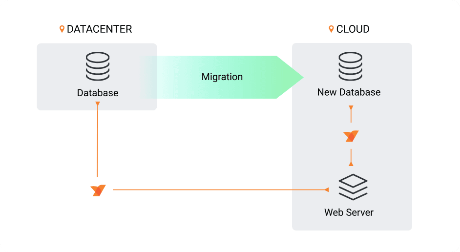 NetBird facilitates fast and simple cloud migrations by allowing you to connect on-prem databases with cloud workloads directly and without complex configuration when migrating to the cloud or vice-versa.