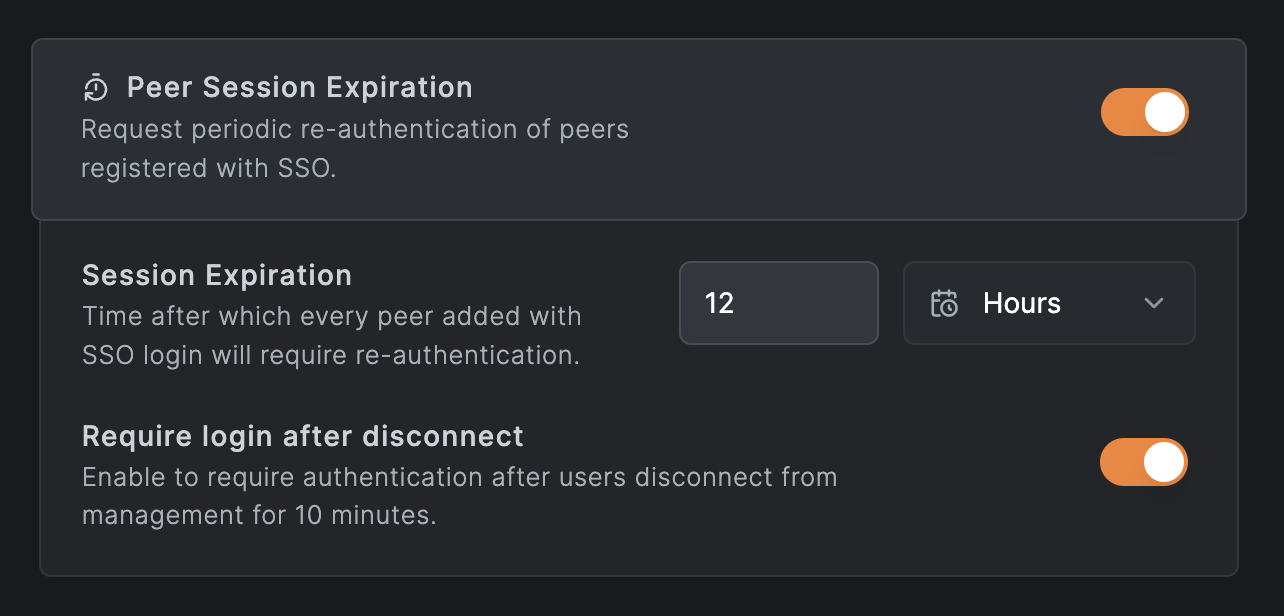 Administrators can now configure peer session inactivity policies. If a peer remains disconnected from our management service for 10 minutes, users will be required to re-authenticate before regaining access. This improves security by enforcing session control.